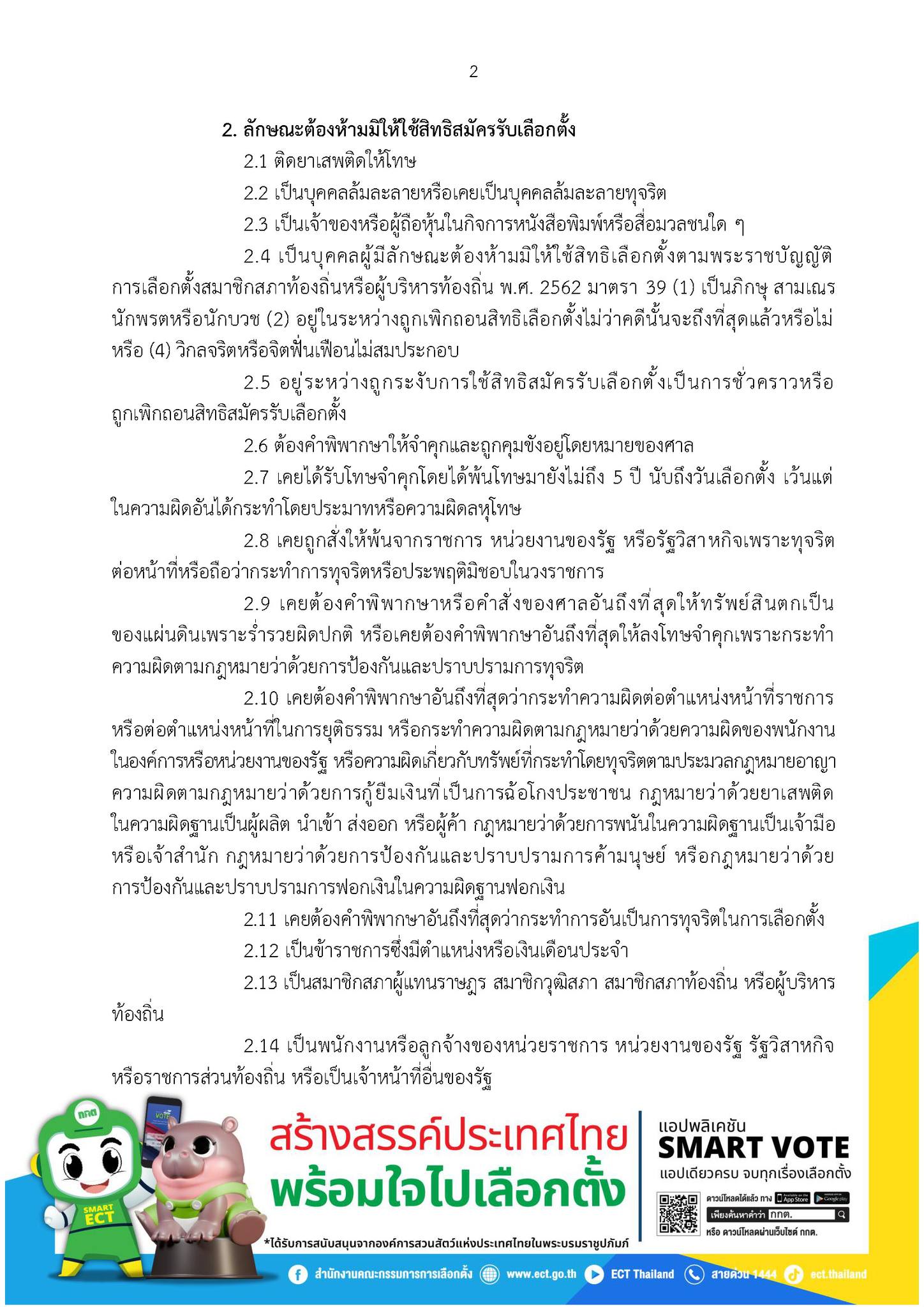 2. ลักษณะต้องห้ามมิให้ใช้สิทธิสมัครรับเลือกตั้ง