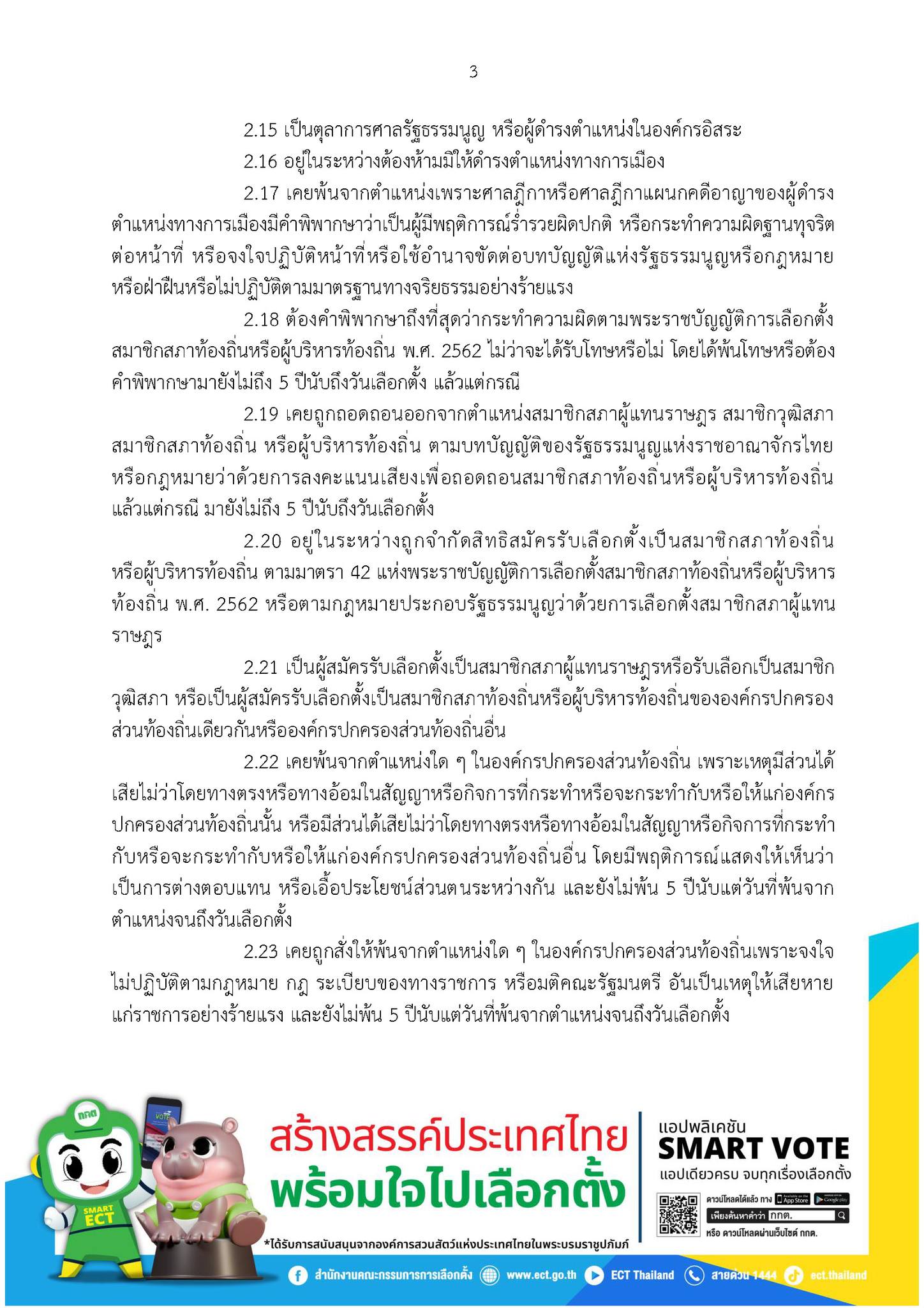 2.13 เป็นสมาชิกสภาผู้แทนราษฎร สมาชิกวุฒิสภา สมาชิกสภาท้องถิ่น หรือผู้บริหารท้องถิ่น